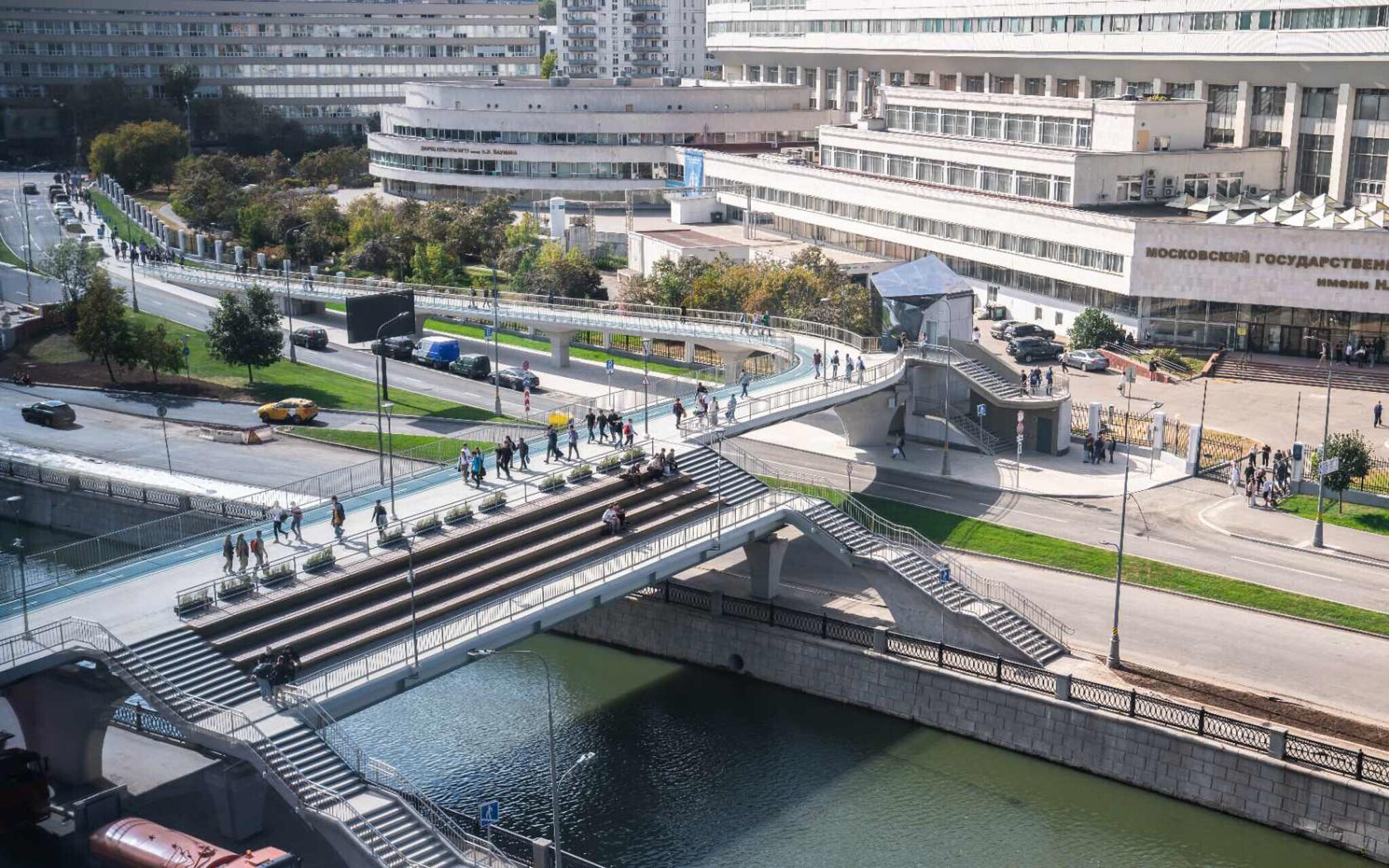 В прошлом году собственный велопешеходный мост через реку Яузу появился у студентов Бауманки. Яркая особенность — амфитеатр с видом на реку.