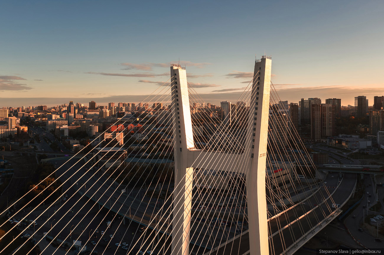 41. Монолитный пилон Центрального моста выполнен в виде огромной буквы «Н» высотой 114 метров.
