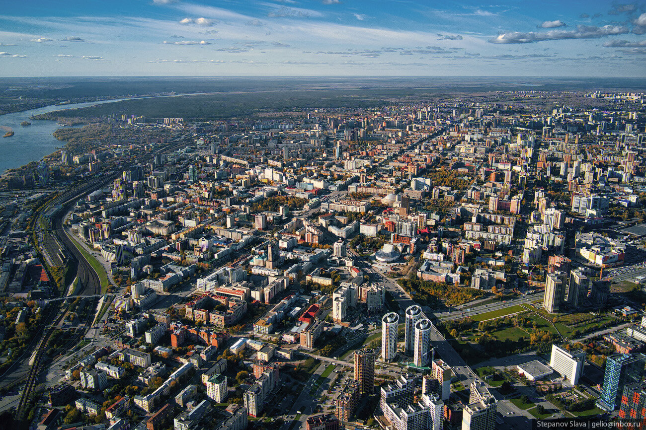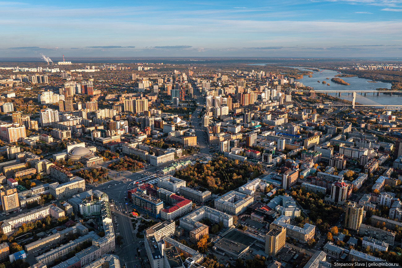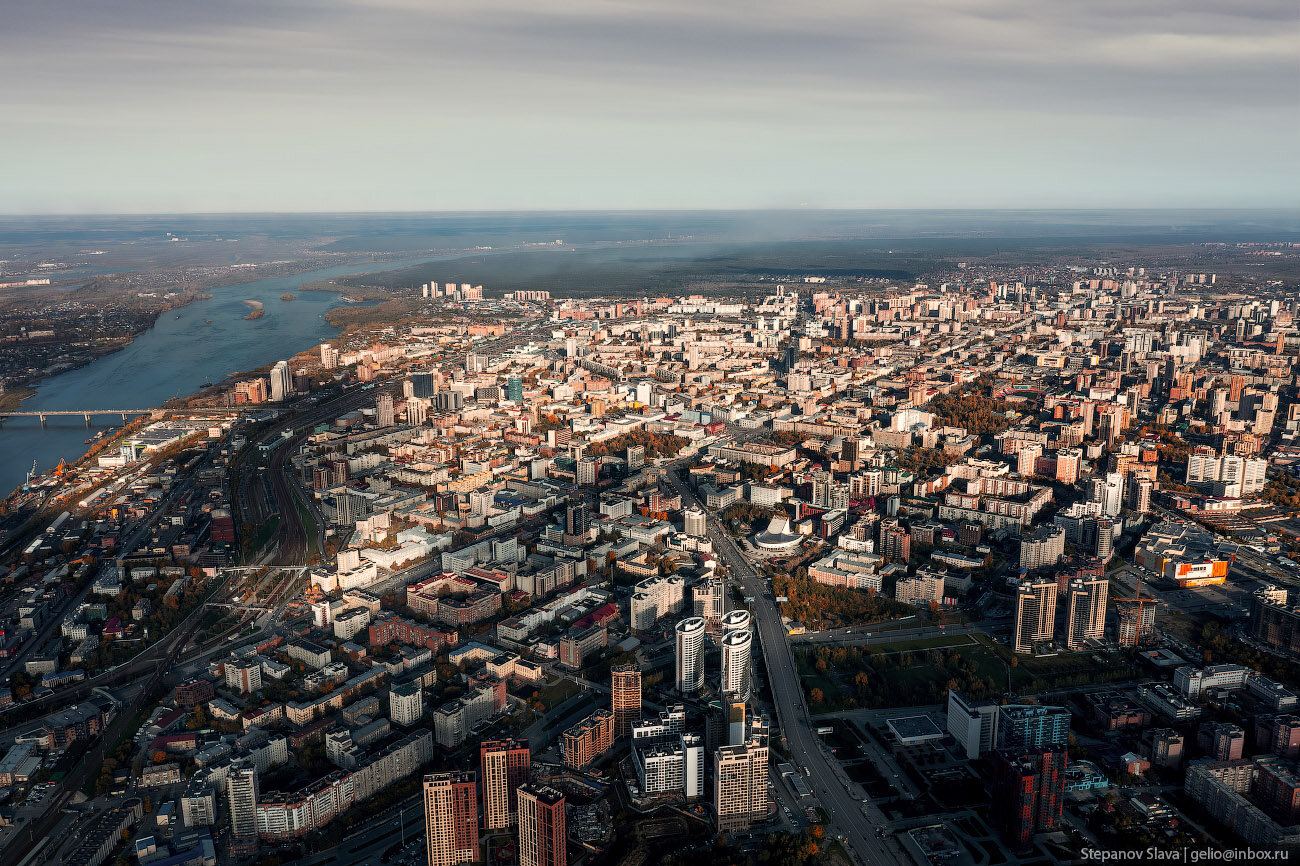 35. Центр Новосибирска с высотками ЖК «Флотилия» на переднем плане.