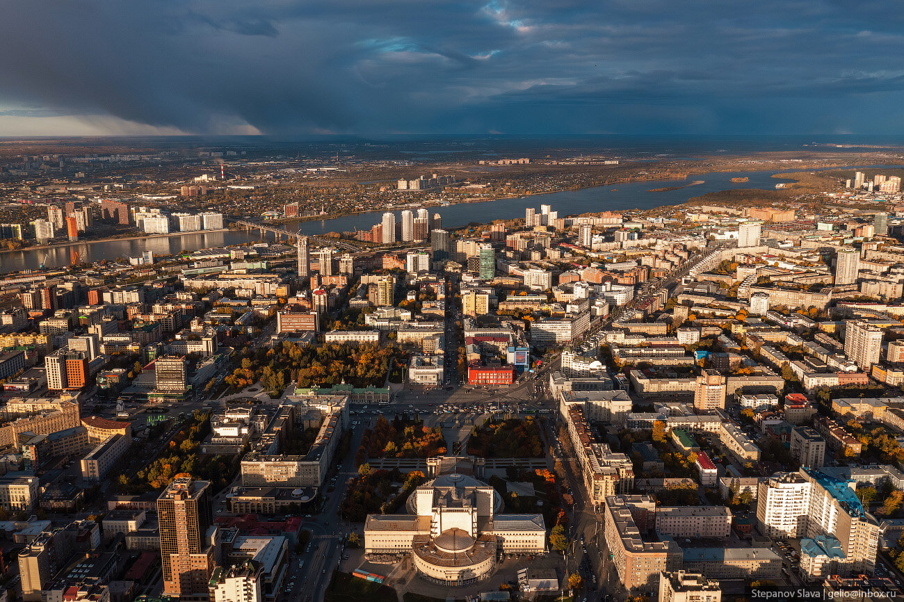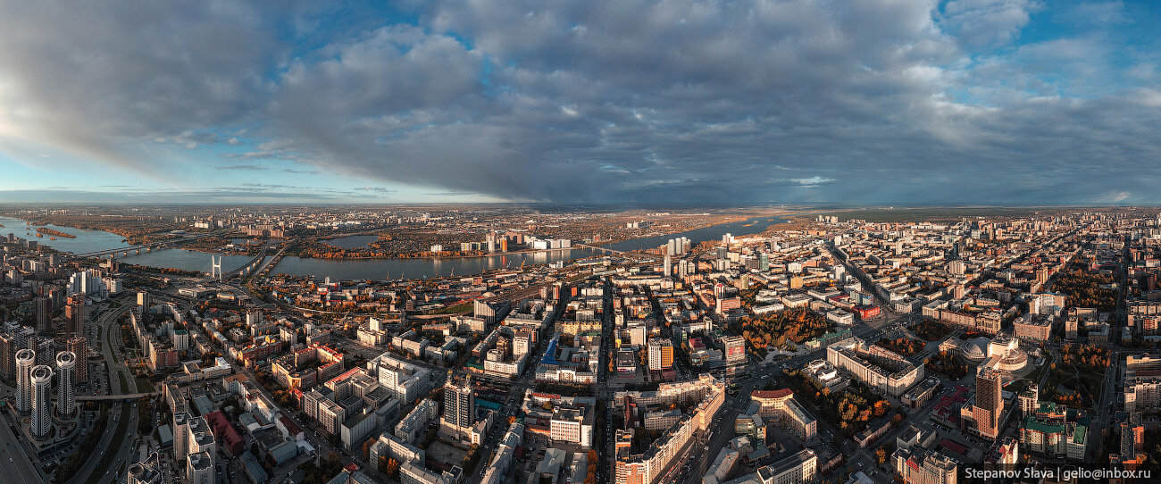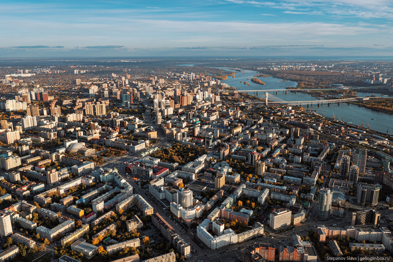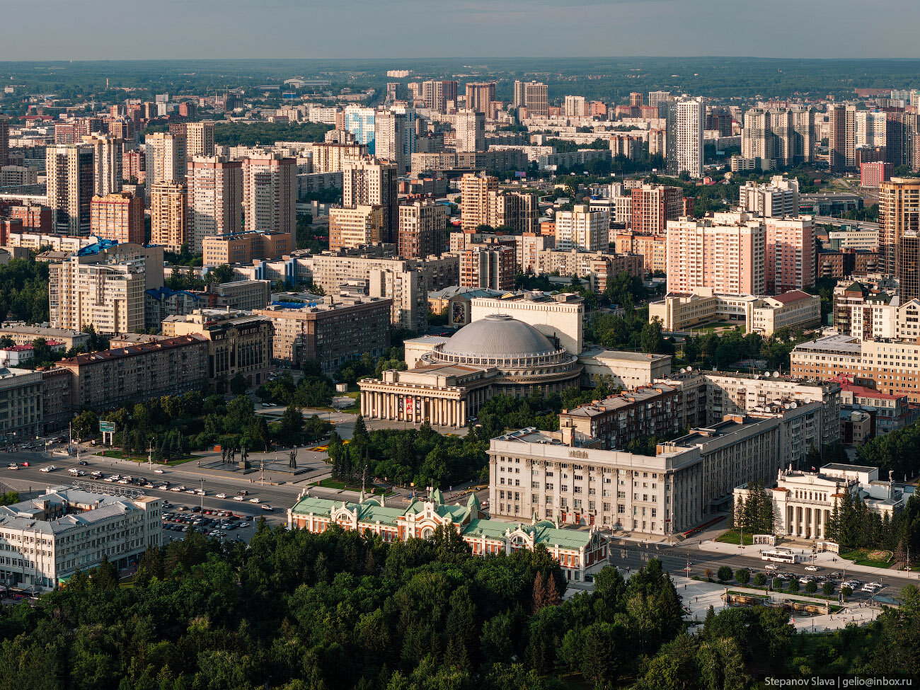 35. Центр Новосибирска с высотками ЖК «Флотилия» на переднем плане.
