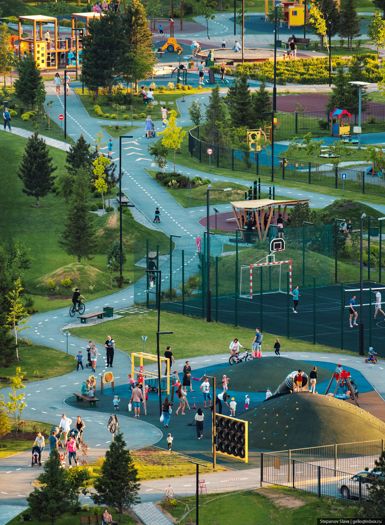 31. Территория парка «Арена» делится на несколько функциональных зон, есть детская и спортивная площадки.