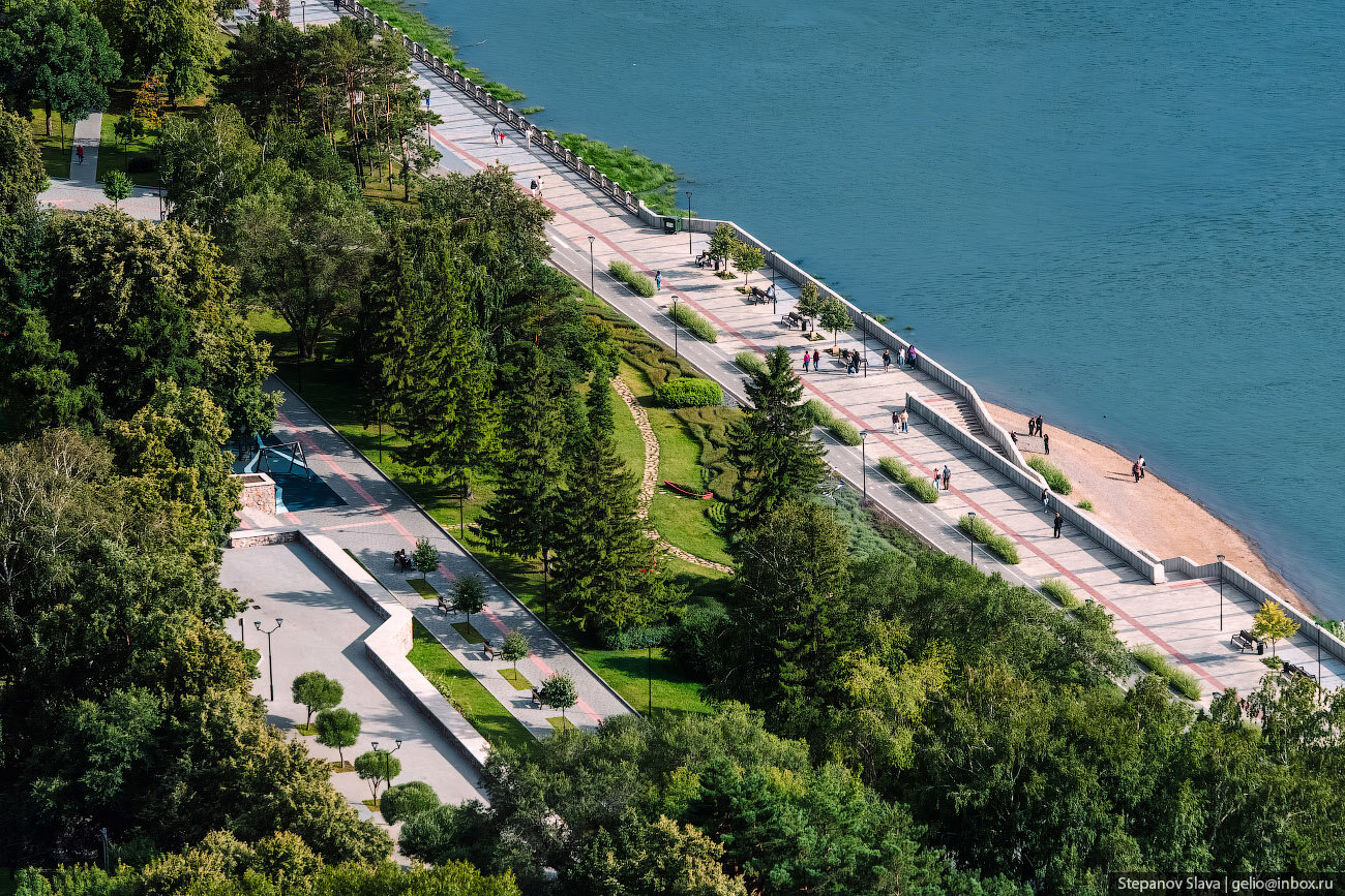 4. Красный проспект по диагонали пересекают Октябрьская и Вокзальная магистрали. Изначально город делился на 3 основные части — Центральную, Вокзальную и Закаменскую. Сейчас они называются Центральный, Железнодорожный и Октябрьский районы. Основные улицы в Центральном районе планировались перпендикулярно Сибирской железной дороге, в Железнодорожном районе — параллельно ж/д путям, а в Октябрьском — параллельно Оби. Из-за бурного роста города начальный план несколько раз корректировался, появились новые жилые районы, а трассировка улиц несколько отличается.