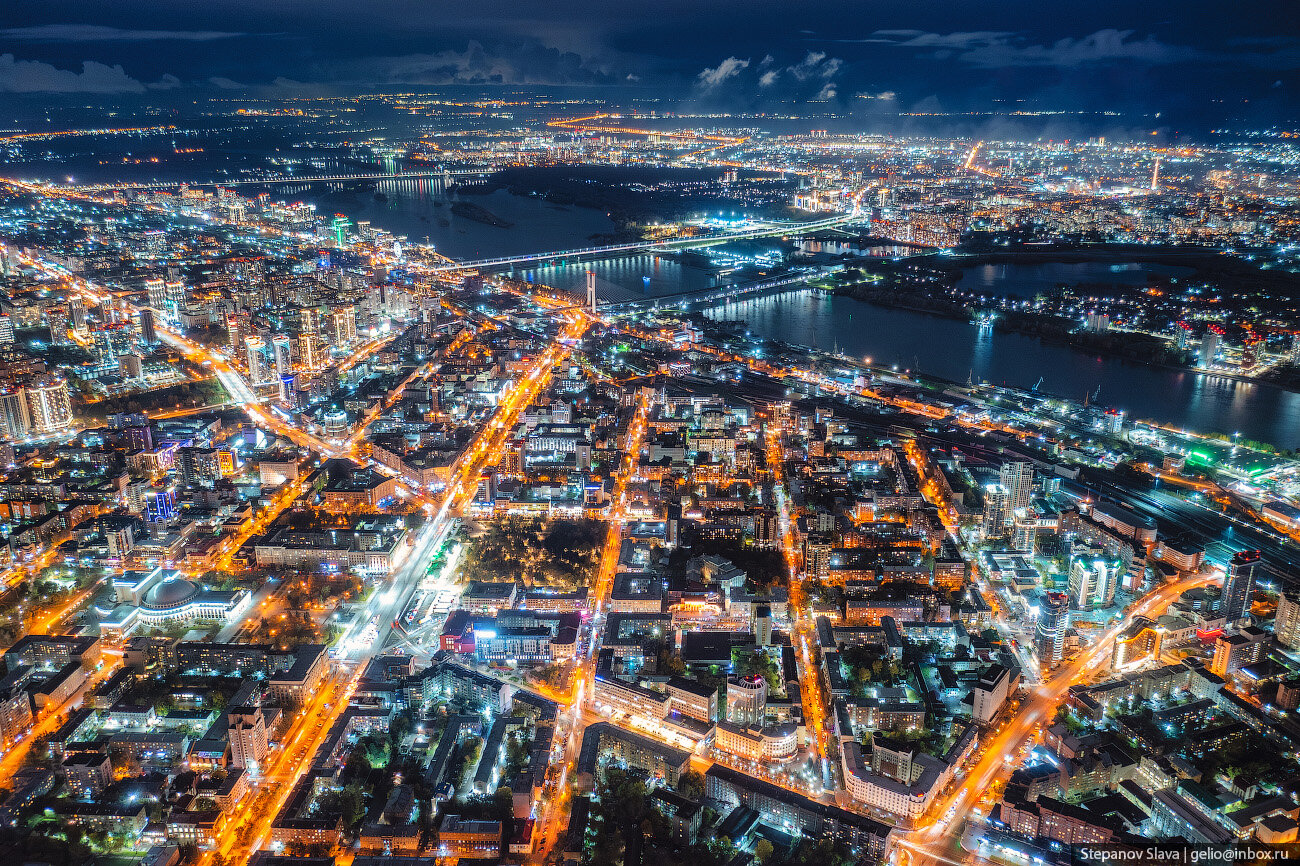 36. Ночная подсветка Новосибирска и мостов через Обь.